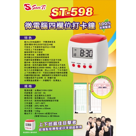 SunTi ST-598 打卡鐘 (台灣製造品質第一、外觀輕巧、色澤迷人)