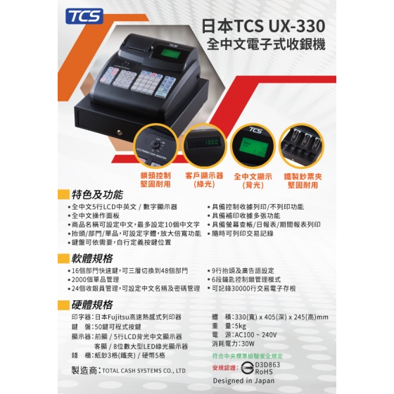 TCS UX-330 熱感中文收據式收銀機