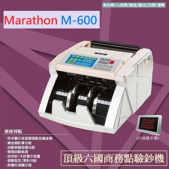 點驗鈔機Marathon M-600 六國幣別(點鈔/驗鈔-台幣-人民幣-美金-歐元-日幣-港幣)