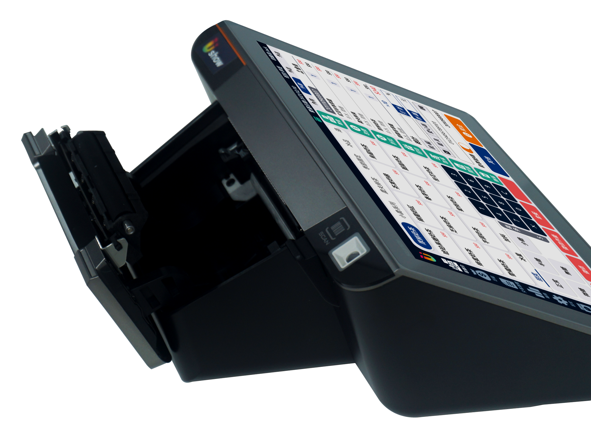 | 內建 | 出單機(自動裁切)、客戶顯示器、掃描器、(充電電池) |
