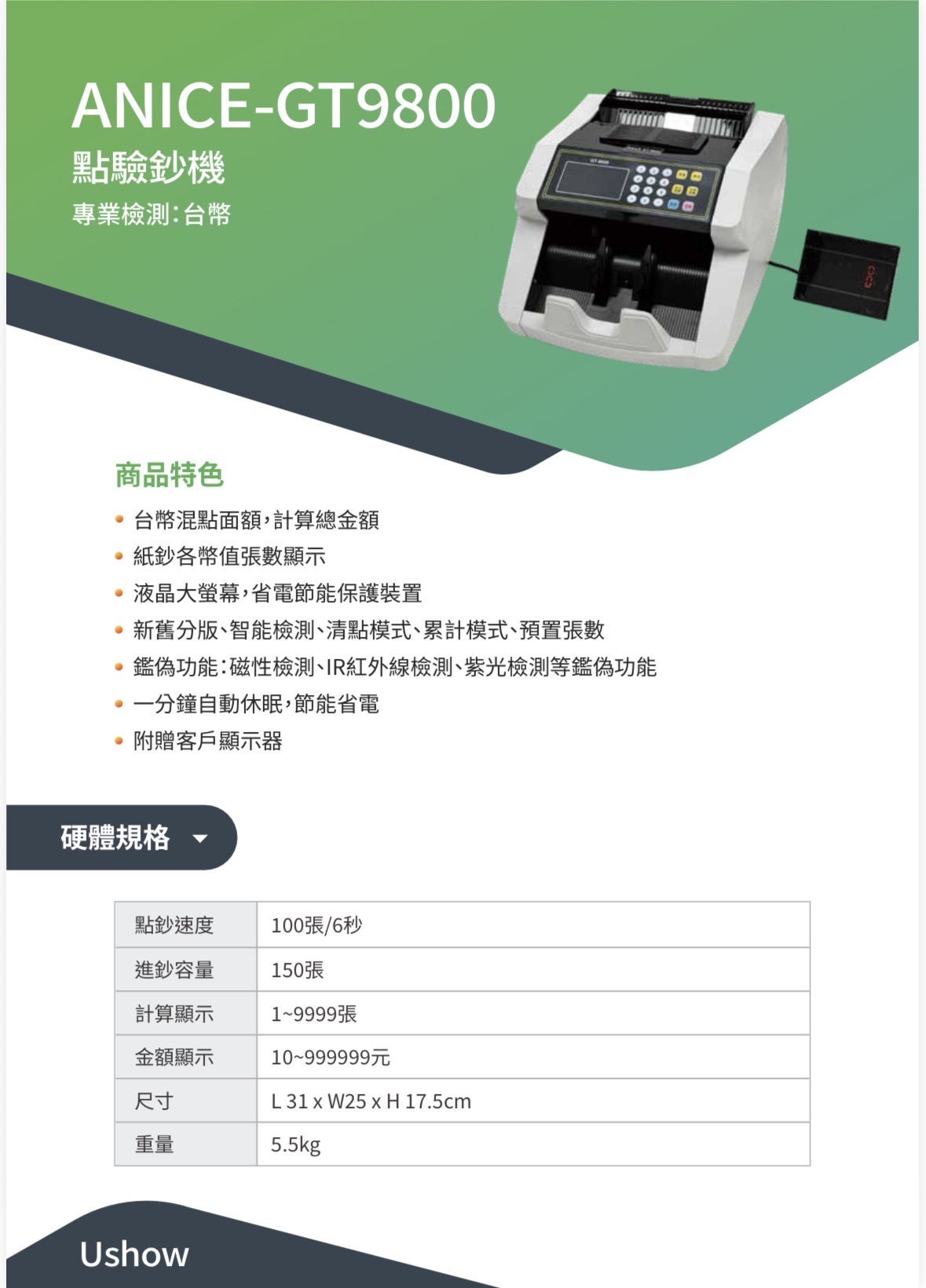 ANICE GT9800 台幣別點驗鈔機