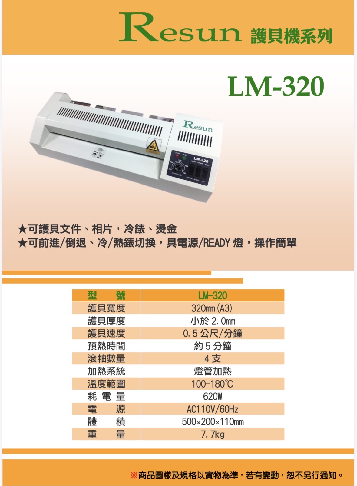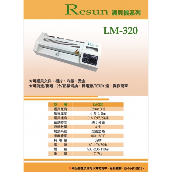 A3護貝機 Resun LM-320